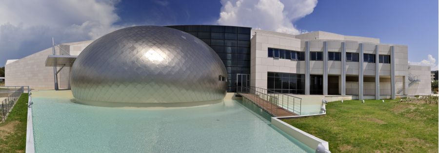 Also outstanding is the building?s facade combining different materials (wood, metal, stone) in full harmony. Its geometry is equally groundbreaking, with a spherical dome of titanium above an artificial pool. In this way, the architect incorporated the element of water perhaps metaphorically alluding to the establishment of Patras by the sea - a strategic location with an impact upon the city s development over the centuries.